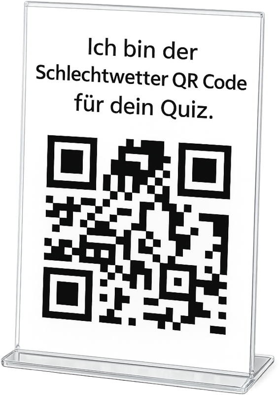 Auf jedem Tisch steht ein Aufsteller mit einem QR-Code. Alle, die teilnehmen möchten, scannen diesen Code und können direkt loslegen. Gespielt wird im Grunde derselbe Quiz wie bei der Schnitzeljagd – mit einem entscheidenden Unterschied: Statt die Quiz-Codes an verschiedenen Orten suchen zu müssen, erhält man die Fragen bequem nacheinander auf dem eigenen Handy.